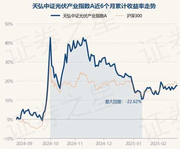 证券之星消息,2月25日,天弘中证光伏产业指数A最新单位净值为0.6402元,累计净值为0.6402元,较前一交易日上涨0.16%。历史数据显示该基金近1个月上涨2.37%,近3个月下跌8.23%,近6个月上涨17.64%,近1年下跌8.6%。该基金近6个月的累计收益率走势如下图: