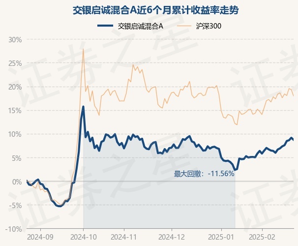 证券之星消息,2月25日,交银启诚混合A最新单位净值为1.1044元,累计净值为1.1044元,较前一交易日下跌0.39%。历史数据显示该基金近1个月上涨2.74%,近3个月上涨2.56%,近6个月上涨8.72%,近1年上涨6.74%。该基金近6个月的累计收益率走势如下图: