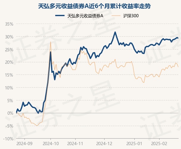 证券之星消息,2月25日,天弘多元收益债券A最新单位净值为1.2108元,累计净值为1.2108元,较前一交易日下跌0.16%。历史数据显示该基金近1个月上涨1.55%,近3个月上涨5.58%,近6个月上涨29.32%,近1年上涨15.18%。该基金近6个月的累计收益率走势如下图: