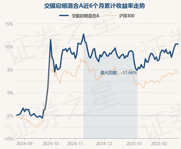 证券之星消息,2月25日,交银启明混合A最新单位净值为1.1806元,累计净值为1.3466元,较前一交易日下跌0.25%。历史数据显示该基金近1个月上涨4.31%,近3个月上涨5.2%,近6个月上涨30.89%,近1年上涨17.31%。该基金近6个月的累计收益率走势如下图: