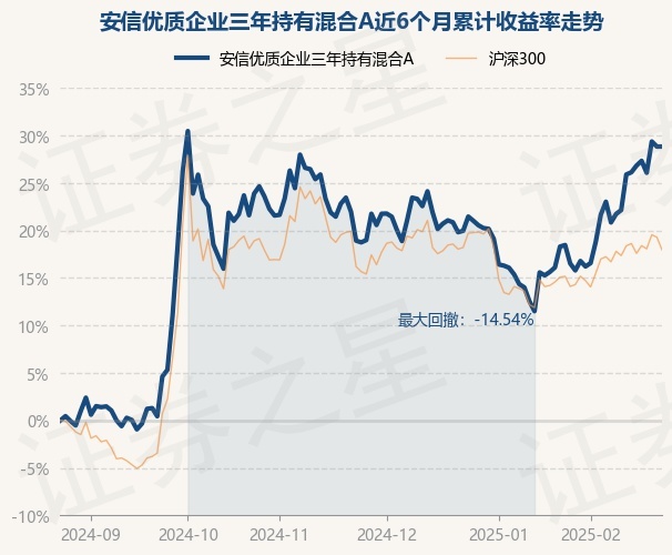 证券之星消息,2月25日,安信优质企业三年持有混合A最新单位净值为0.8551元,累计净值为0.8551元,较前一交易日上涨0.0%。历史数据显示该基金近1个月上涨8.76%,近3个月上涨6.97%,近6个月上涨27.02%,近1年上涨21.62%。该基金近6个月的累计收益率走势如下图: