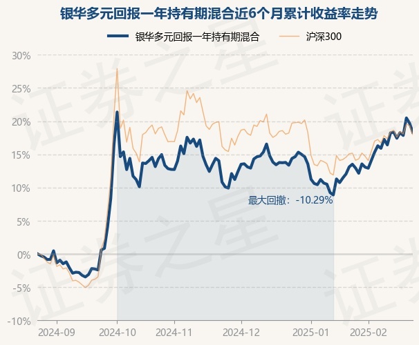 证券之星消息,2月25日,银华多元回报一年持有期混合最新单位净值为0.7315元,累计净值为0.7315元,较前一交易日下跌1.14%。历史数据显示该基金近1个月上涨4.2%,近3个月上涨7.48%,近6个月上涨18.33%,近1年上涨17.74%。该基金近6个月的累计收益率走势如下图: