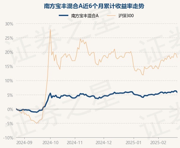 证券之星消息,2月25日,南方宝丰混合A最新单位净值为1.2359元,累计净值为1.2359元,较前一交易日下跌0.48%。历史数据显示该基金近1个月上涨0.57%,近3个月上涨1.99%,近6个月上涨5.82%,近1年上涨6.92%。该基金近6个月的累计收益率走势如下图: