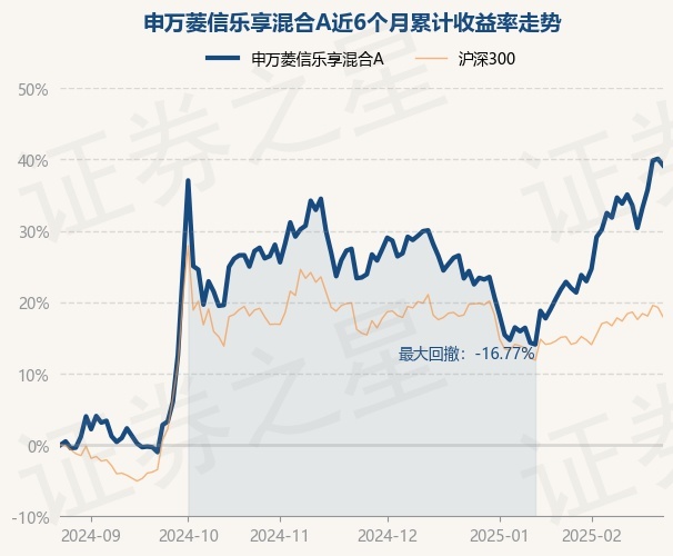 证券之星消息,2月25日,申万菱信乐享混合A最新单位净值为1.0497元,累计净值为1.0497元,较前一交易日下跌0.64%。历史数据显示该基金近1个月上涨12.44%,近3个月上涨12.74%,近6个月上涨39.2%,近1年上涨27.59%。该基金近6个月的累计收益率走势如下图: