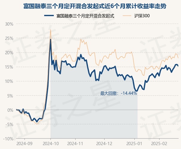 证券之星消息,2月25日,富国融泰三个月定开混合发起式最新单位净值为0.7581元,累计净值为0.7581元,较前一交易日下跌0.42%。历史数据显示该基金近1个月上涨2.64%,近3个月上涨4.19%,近6个月上涨15.27%,近1年上涨9.79%。该基金近6个月的累计收益率走势如下图: