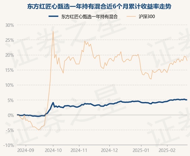 证券之星消息,2月25日,东方红匠心甄选一年持有混合最新单位净值为1.0288元,累计净值为1.1744元,较前一交易日上涨0.0%。历史数据显示该基金近1个月上涨0.46%,近3个月上涨1.89%,近6个月上涨4.81%,近1年上涨4.81%。该基金近6个月的累计收益率走势如下图:
