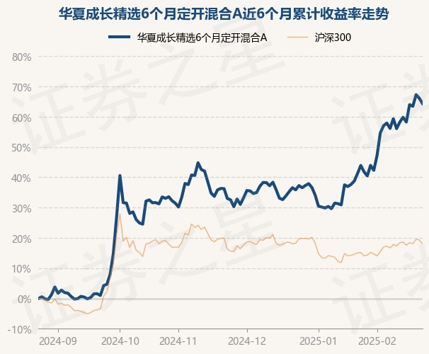 证券之星消息,2月25日,华夏成长精选6个月定开混合A最新单位净值为1.1067元,累计净值为1.1067元,较前一交易日下跌1.07%。历史数据显示该基金近1个月上涨14.16%,近3个月上涨23.94%,近6个月上涨64.3%,近1年上涨58.58%。该基金近6个月的累计收益率走势如下图: