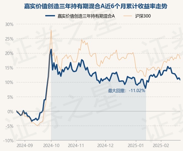 证券之星消息,2月25日,嘉实价值创造三年持有期混合A最新单位净值为0.9937元,累计净值为0.9937元,较前一交易日下跌0.59%。历史数据显示该基金近1个月下跌1.7%,近3个月上涨0.2%,近6个月上涨10.78%,近1年上涨9.68%。该基金近6个月的累计收益率走势如下图: