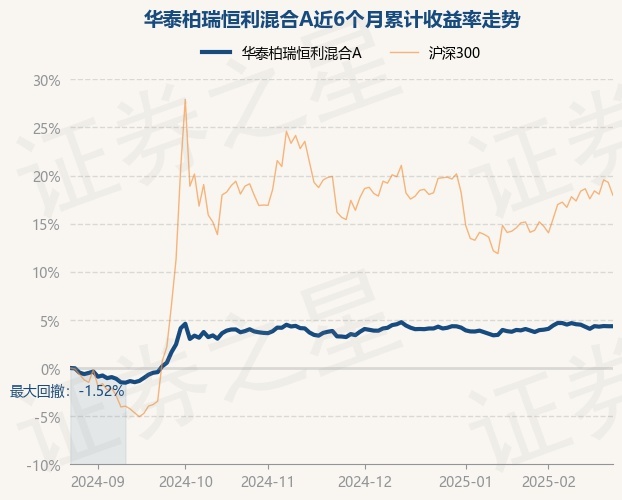 证券之星消息,2月25日,华泰柏瑞恒利混合A最新单位净值为1.1606元,累计净值为1.1843元,较前一交易日上涨0.0%。历史数据显示该基金近1个月上涨0.35%,近3个月上涨0.99%,近6个月上涨4.3%,近1年上涨6.74%。该基金近6个月的累计收益率走势如下图: