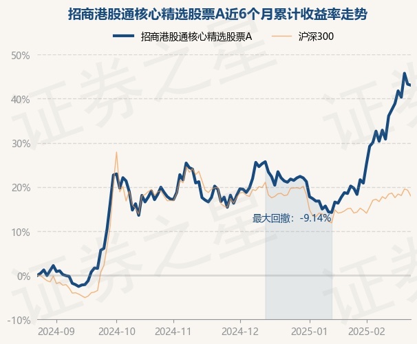 证券之星消息,2月25日,招商港股通核心精选股票A最新单位净值为0.8592元,累计净值为0.8592元,较前一交易日下跌0.16%。历史数据显示该基金近1个月上涨17.6%,近3个月上涨21.54%,近6个月上涨43.06%,近1年上涨42.35%。该基金近6个月的累计收益率走势如下图: