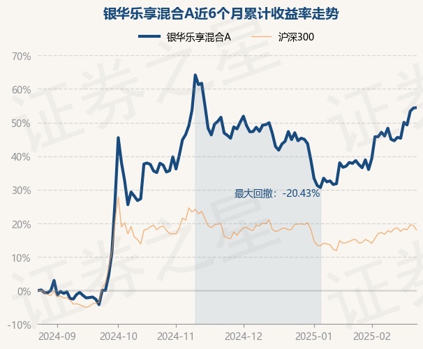 证券之星消息,2月25日,银华乐享混合A最新单位净值为0.7286元,累计净值为0.7286元,较前一交易日上涨0.07%。历史数据显示该基金近1个月上涨11.19%,近3个月上涨5.64%,近6个月上涨54.43%,近1年上涨35.93%。该基金近6个月的累计收益率走势如下图: