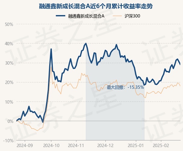 证券之星消息,2月25日,融通鑫新成长混合A最新单位净值为1.1052元,累计净值为1.1052元,较前一交易日下跌1.05%。历史数据显示该基金近1个月上涨8.12%,近3个月下跌0.89%,近6个月上涨29.17%,近1年上涨4.8%。该基金近6个月的累计收益率走势如下图: