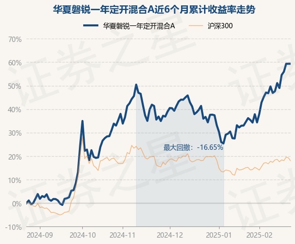 证券之星消息,2月25日,华夏磐锐一年定开混合A最新单位净值为1.3992元,累计净值为1.3992元,较前一交易日上涨0.0%。历史数据显示该基金近1个月上涨15.45%,近3个月上涨16.29%,近6个月上涨59.13%,近1年上涨46.24%。该基金近6个月的累计收益率走势如下图: