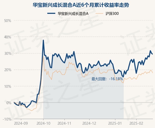 证券之星消息,2月25日,华宝新兴成长混合A最新单位净值为1.1468元,累计净值为1.1468元,较前一交易日下跌0.41%。历史数据显示该基金近1个月上涨2.47%,近3个月上涨9.7%,近6个月上涨29.39%,近1年上涨19.61%。该基金近6个月的累计收益率走势如下图: