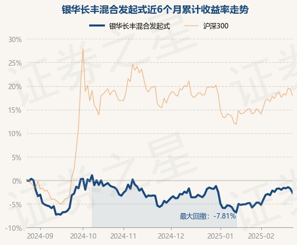 证券之星消息,2月25日,银华长丰混合发起式最新单位净值为1.425元,累计净值为1.425元,较前一交易日下跌0.89%。历史数据显示该基金近1个月上涨2.19%,近3个月上涨3.17%,近6个月下跌2.64%,近1年上涨7.29%。该基金近6个月的累计收益率走势如下图: