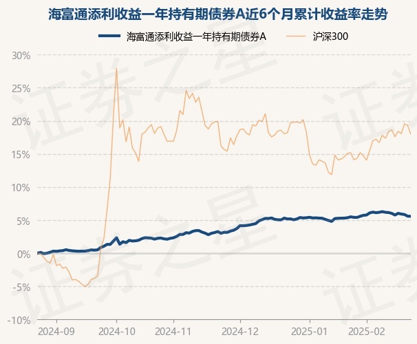 证券之星消息,2月25日,海富通添利收益一年持有期债券A最新单位净值为1.0836元,累计净值为1.0836元,较前一交易日下跌0.02%。历史数据显示该基金近1个月上涨0.0%,近3个月上涨2.34%,近6个月上涨5.57%,近1年上涨7.03%。该基金近6个月的累计收益率走势如下图: