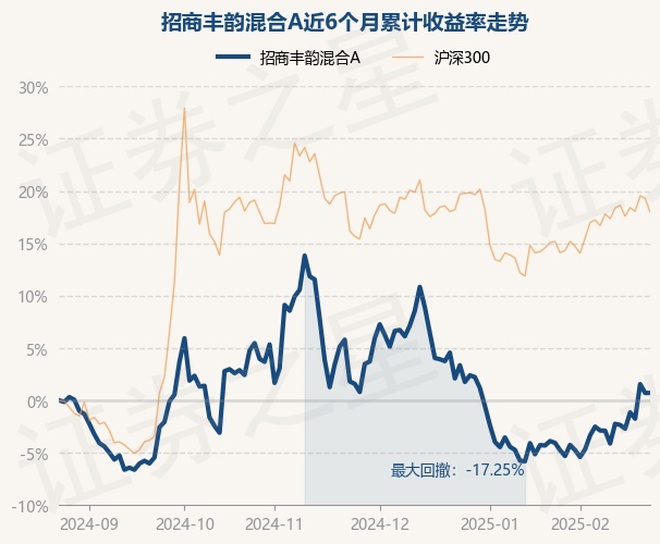 证券之星消息,2月25日,招商丰韵混合A最新单位净值为1.1853元,累计净值为1.1853元,较前一交易日上涨0.0%。历史数据显示该基金近1个月上涨4.03%,近3个月下跌1.94%,近6个月下跌0.39%,近1年上涨0.35%。该基金近6个月的累计收益率走势如下图: