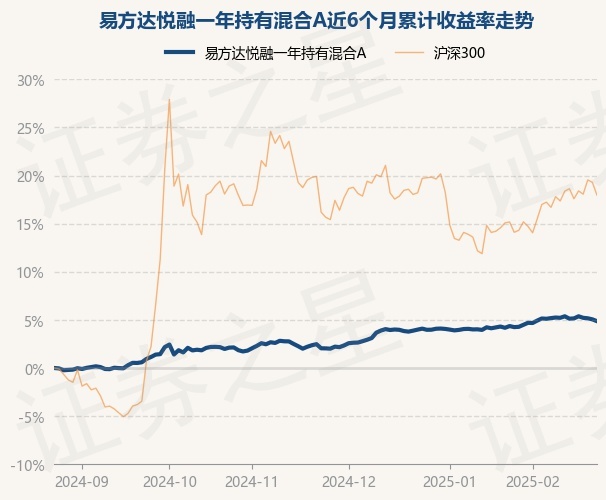 证券之星消息,2月25日,易方达悦融一年持有混合A最新单位净值为1.0535元,累计净值为1.0535元,较前一交易日下跌0.18%。历史数据显示该基金近1个月上涨0.36%,近3个月上涨2.77%,近6个月上涨4.87%,近1年上涨4.31%。该基金近6个月的累计收益率走势如下图: