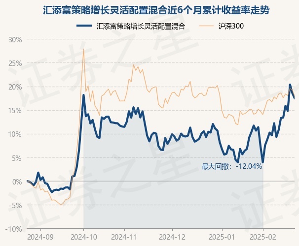 证券之星消息,2月25日,汇添富策略增长灵活配置混合最新单位净值为1.0786元,累计净值为1.0786元,较前一交易日下跌0.9%。历史数据显示该基金近1个月上涨5.52%,近3个月上涨10.22%,近6个月上涨17.53%,近1年上涨17.04%。该基金近6个月的累计收益率走势如下图: