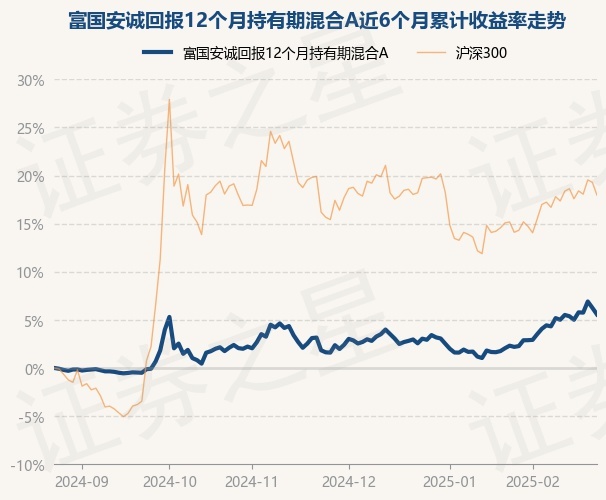富国安诚回报12个月持有期混合A为混合型-偏债基金,根据最新一期基金季报显示,该基金资产配置:股票占净值比30.13%,债券占净值比61.95%,现金占净值比8.3%。基金十大重仓股如下: