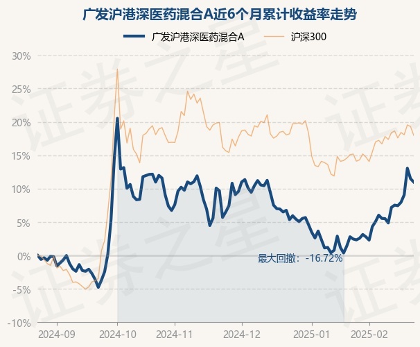 证券之星消息,2月25日,广发沪港深医药混合A最新单位净值为0.6872元,累计净值为0.6872元,较前一交易日下跌0.45%。历史数据显示该基金近1个月上涨7.61%,近3个月上涨4.2%,近6个月上涨10.98%,近1年上涨8.84%。该基金近6个月的累计收益率走势如下图:
