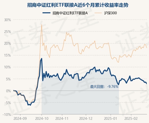 证券之星消息,2月25日,招商中证红利ETF联接A最新单位净值为1.0447元,累计净值为1.0977元,较前一交易日下跌0.63%。历史数据显示该基金近1个月下跌1.9%,近3个月下跌1.52%,近6个月上涨2.92%,近1年下跌0.93%。该基金近6个月的累计收益率走势如下图: