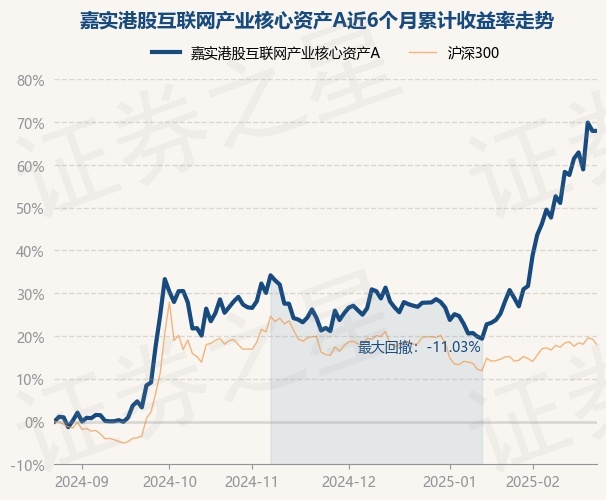 证券之星消息,2月25日,嘉实港股互联网产业核心资产A最新单位净值为0.815元,累计净值为0.815元,较前一交易日上涨0.0%。历史数据显示该基金近1个月上涨26.77%,近3个月上涨36.17%,近6个月上涨65.95%,近1年上涨60.78%。该基金近6个月的累计收益率走势如下图: