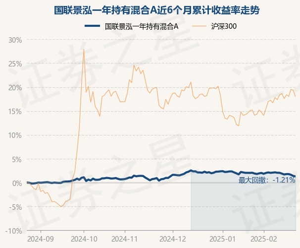 证券之星消息,2月25日,国联景泓一年持有混合A最新单位净值为0.986元,累计净值为0.986元,较前一交易日下跌0.09%。历史数据显示该基金近1个月下跌0.61%,近3个月上涨0.59%,近6个月上涨1.29%,近1年上涨1.08%。该基金近6个月的累计收益率走势如下图: