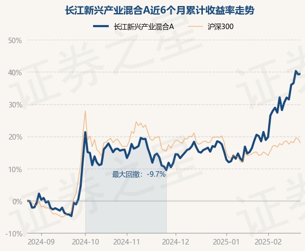 证券之星消息,2月25日,长江新兴产业混合A最新单位净值为1.1191元,累计净值为1.1191元,较前一交易日上涨0.12%。历史数据显示该基金近1个月上涨14.85%,近3个月上涨25.97%,近6个月上涨39.42%,近1年上涨48.46%。该基金近6个月的累计收益率走势如下图: