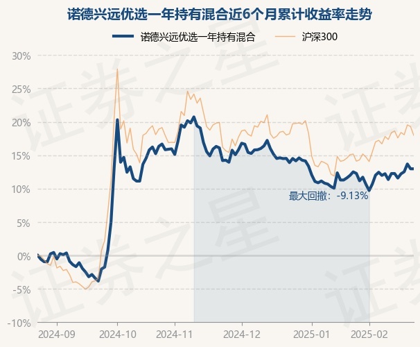 证券之星消息,2月25日,诺德兴远优选一年持有混合最新单位净值为0.7646元,累计净值为0.7646元,较前一交易日上涨0.0%。历史数据显示该基金近1个月上涨0.72%,近3个月下跌1.52%,近6个月上涨12.52%,近1年上涨5.99%。该基金近6个月的累计收益率走势如下图: