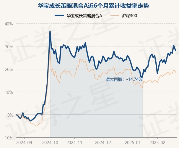 证券之星消息,2月25日,华宝成长策略混合A最新单位净值为1.546元,累计净值为1.546元,较前一交易日下跌0.7%。历史数据显示该基金近1个月上涨1.46%,近3个月上涨6.6%,近6个月上涨27.85%,近1年上涨24.74%。该基金近6个月的累计收益率走势如下图: