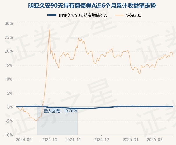 证券之星消息,2月25日,明亚久安90天持有期债券A最新单位净值为2.1931元,累计净值为2.6元,较前一交易日下跌0.0%。历史数据显示该基金近1个月上涨0.01%,近3个月上涨0.53%,近6个月上涨0.02%,近1年上涨1.01%。该基金近6个月的累计收益率走势如下图: