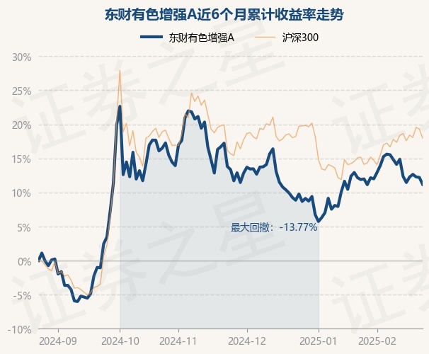 证券之星消息,2月25日,东财有色增强A最新单位净值为1.2138元,累计净值为1.2138元,较前一交易日下跌0.91%。历史数据显示该基金近1个月下跌0.86%,近3个月下跌1.91%,近6个月上涨11.18%,近1年上涨11.94%。该基金近6个月的累计收益率走势如下图:
