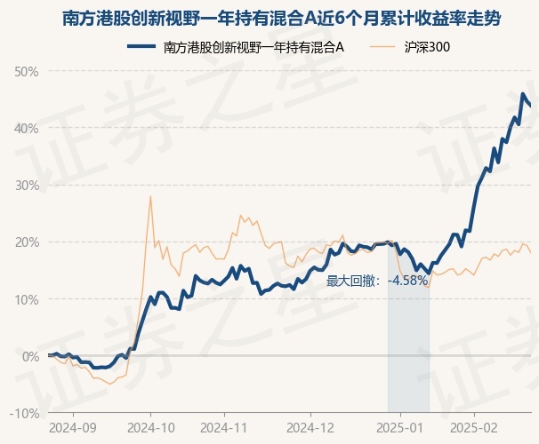 证券之星消息,2月25日,南方港股创新视野一年持有混合A最新单位净值为1.3349元,累计净值为1.3349元,较前一交易日下跌0.51%。历史数据显示该基金近1个月上涨17.96%,近3个月上涨28.02%,近6个月上涨43.83%,近1年上涨50.5%。该基金近6个月的累计收益率走势如下图: