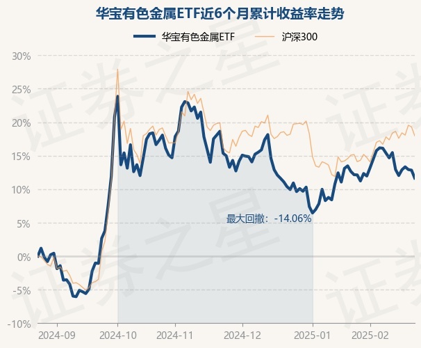 证券之星消息,2月25日,华宝有色金属ETF最新单位净值为1.0762元,累计净值为1.0762元,较前一交易日下跌1.05%。历史数据显示该基金近1个月下跌0.61%,近3个月下跌2.89%,近6个月上涨11.65%,近1年上涨11.92%。该基金近6个月的累计收益率走势如下图: