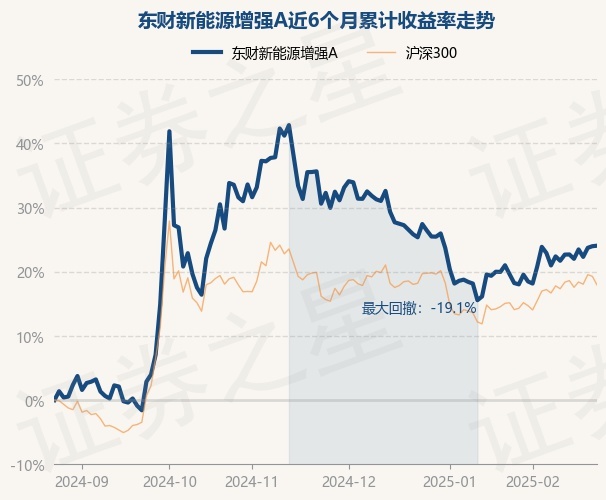 证券之星消息,2月25日,东财新能源增强A最新单位净值为0.4924元,累计净值为0.4924元,较前一交易日上涨0.06%。历史数据显示该基金近1个月上涨3.77%,近3个月下跌6.23%,近6个月上涨24.06%,近1年上涨5.78%。该基金近6个月的累计收益率走势如下图: