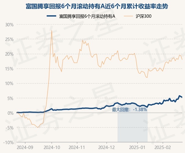 证券之星消息,2月25日,富国腾享回报6个月滚动持有A最新单位净值为1.113元,累计净值为1.113元,较前一交易日下跌0.22%。历史数据显示该基金近1个月上涨1.81%,近3个月上涨3.82%,近6个月上涨5.22%,近1年上涨6.23%。该基金近6个月的累计收益率走势如下图: