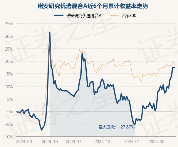 证券之星消息,2月25日,诺安研究优选混合A最新单位净值为0.8711元,累计净值为0.8711元,较前一交易日上涨0.0%。历史数据显示该基金近1个月上涨14.63%,近3个月上涨9.52%,近6个月上涨18.12%,近1年上涨6.63%。该基金近6个月的累计收益率走势如下图: