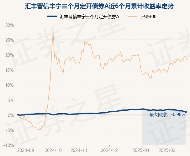 证券之星消息,2月25日,汇丰晋信丰宁三个月定开债券A最新单位净值为1.0353元,累计净值为1.0653元,较前一交易日上涨0.04%。历史数据显示该基金近1个月下跌0.52%,近3个月上涨0.3%,近6个月上涨0.98%,近1年上涨2.67%。该基金近6个月的累计收益率走势如下图: