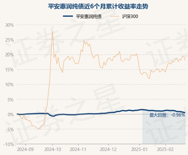 证券之星消息,2月25日,平安惠润纯债最新单位净值为1.0331元,累计净值为1.1421元,较前一交易日上涨0.0%。历史数据显示该基金近1个月下跌0.47%,近3个月上涨0.32%,近6个月上涨0.54%,近1年上涨1.91%。该基金近6个月的累计收益率走势如下图: