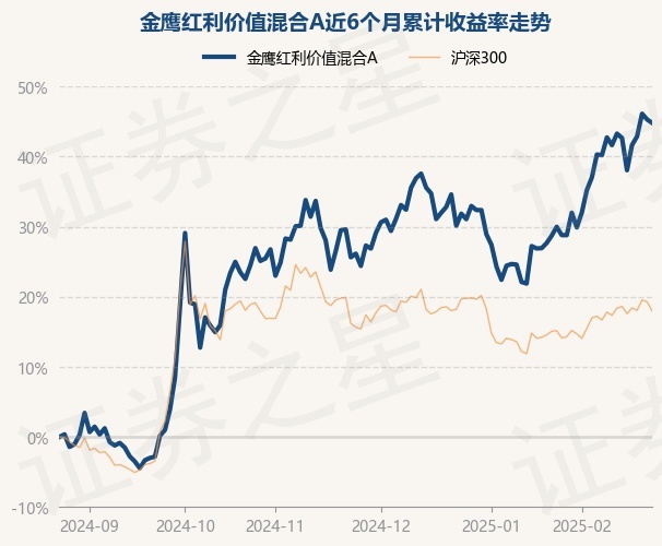 证券之星消息,2月25日,金鹰红利价值混合A最新单位净值为2.2465元,累计净值为4.059元,较前一交易日下跌0.34%。历史数据显示该基金近1个月上涨9.71%,近3个月上涨14.79%,近6个月上涨44.81%,近1年上涨38.84%。该基金近6个月的累计收益率走势如下图: