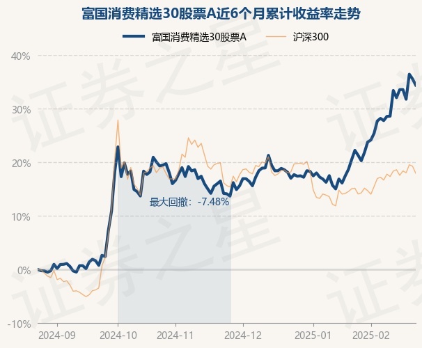 证券之星消息,2月25日,富国消费精选30股票A最新单位净值为0.9083元,累计净值为0.9083元,较前一交易日下跌0.85%。历史数据显示该基金近1个月上涨10.31%,近3个月上涨17.78%,近6个月上涨34.42%,近1年上涨37.52%。该基金近6个月的累计收益率走势如下图: