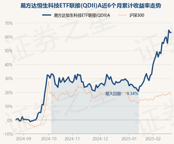 证券之星消息,2月25日,易方达恒生科技ETF联接(QDII)A最新单位净值为1.431元,累计净值为1.431元,较前一交易日上涨0.0%。历史数据显示该基金近1个月上涨21.4%,近3个月上涨32.29%,近6个月上涨60.35%,近1年上涨64.62%。该基金近6个月的累计收益率走势如下图: