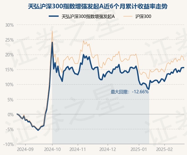 证券之星消息,2月25日,天弘沪深300指数增强发起A最新单位净值为1.2328元,累计净值为1.2328元,较前一交易日上涨0.0%。历史数据显示该基金近1个月上涨2.27%,近3个月上涨2.49%,近6个月上涨14.34%,近1年上涨11.65%。该基金近6个月的累计收益率走势如下图: