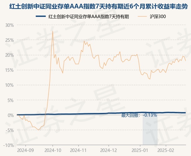 证券之星消息,2月25日,红土创新中证同业存单AAA指数7天持有期最新单位净值为1.0309元,累计净值为1.0309元,较前一交易日上涨0.0%。历史数据显示该基金近1个月上涨0.0%,近3个月上涨0.28%,近6个月上涨0.69%,近1年上涨1.6%。该基金近6个月的累计收益率走势如下图: