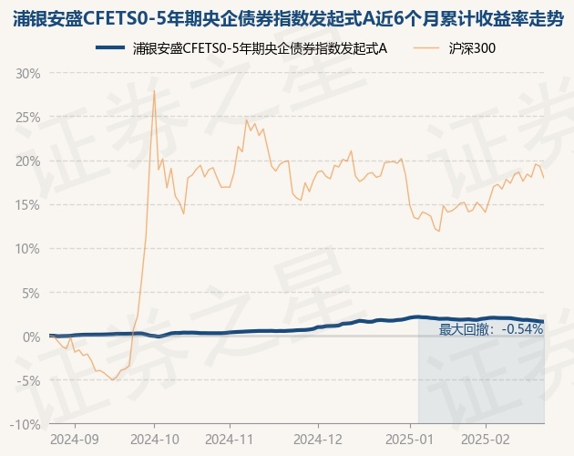 证券之星消息,2月25日,浦银安盛CFETS0-5年期央企债券指数发起式A最新单位净值为1.009元,累计净值为1.092元,较前一交易日下跌0.03%。历史数据显示该基金近1个月下跌0.2%,近3个月上涨0.97%,近6个月上涨1.59%,近1年上涨3.23%。该基金近6个月的累计收益率走势如下图:
