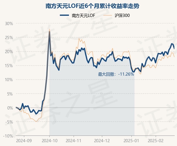 证券之星消息,2月25日,南方天元LOF最新单位净值为3.3344元,累计净值为3.3344元,较前一交易日下跌1.2%。历史数据显示该基金近1个月上涨2.84%,近3个月上涨5.35%,近6个月上涨21.0%,近1年上涨15.78%。该基金近6个月的累计收益率走势如下图: