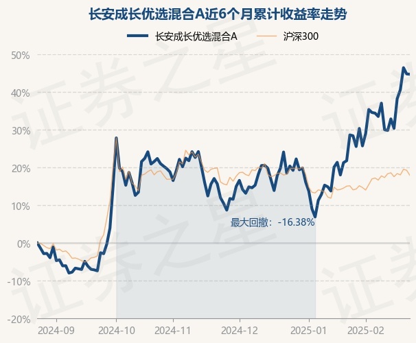 证券之星消息,2月25日,长安成长优选混合A最新单位净值为0.6739元,累计净值为0.6739元,较前一交易日下跌0.06%。历史数据显示该基金近1个月上涨11.02%,近3个月上涨30.96%,近6个月上涨44.74%,近1年上涨39.01%。该基金近6个月的累计收益率走势如下图: