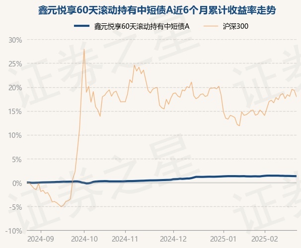 证券之星消息,2月25日,鑫元悦享60天滚动持有中短债A最新单位净值为1.0984元,累计净值为1.0984元,较前一交易日下跌0.01%。历史数据显示该基金近1个月上涨0.05%,近3个月上涨0.83%,近6个月上涨1.34%,近1年上涨3.02%。该基金近6个月的累计收益率走势如下图: