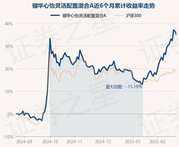 证券之星消息,2月25日,银华心怡灵活配置混合A最新单位净值为2.6989元,累计净值为2.8719元,较前一交易日下跌1.0%。历史数据显示该基金近1个月上涨14.33%,近3个月上涨14.91%,近6个月上涨35.13%,近1年上涨26.73%。该基金近6个月的累计收益率走势如下图: